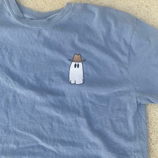 Cowboo – Ghost Tee with Cowboy Hat Embroidery